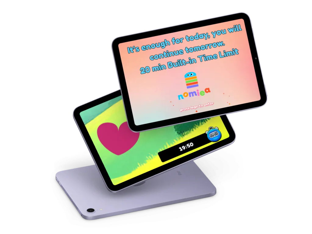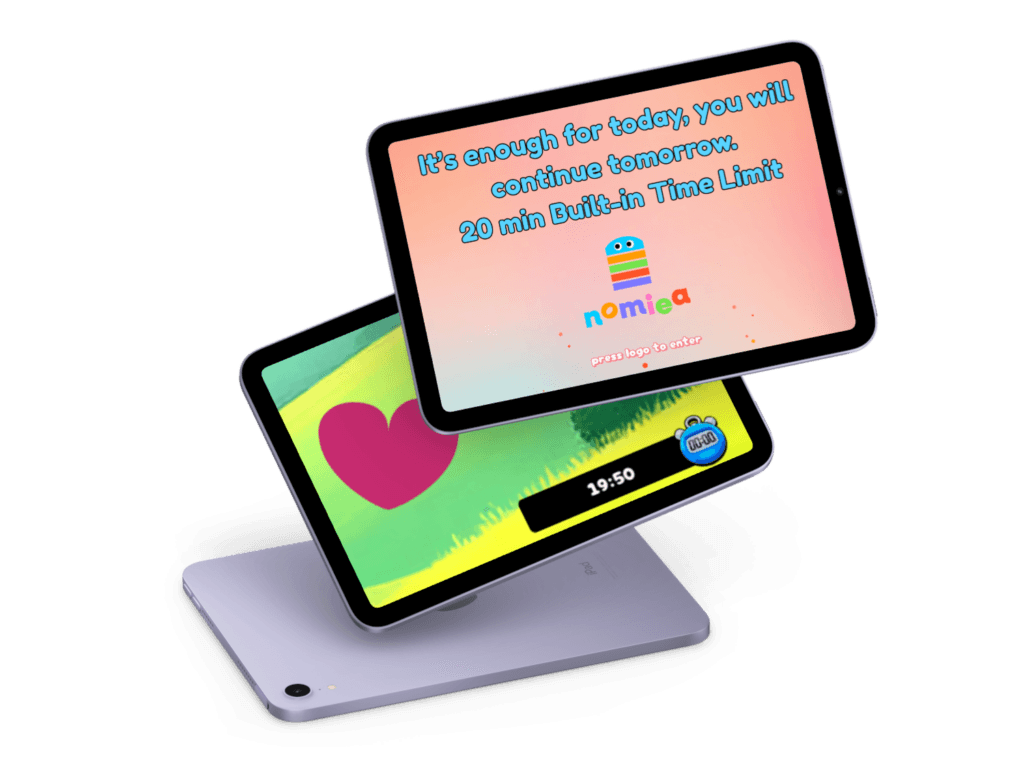 Nomiea has a built-in 20-minute time limit, after which only an adult can extend the session by 15 minutes.